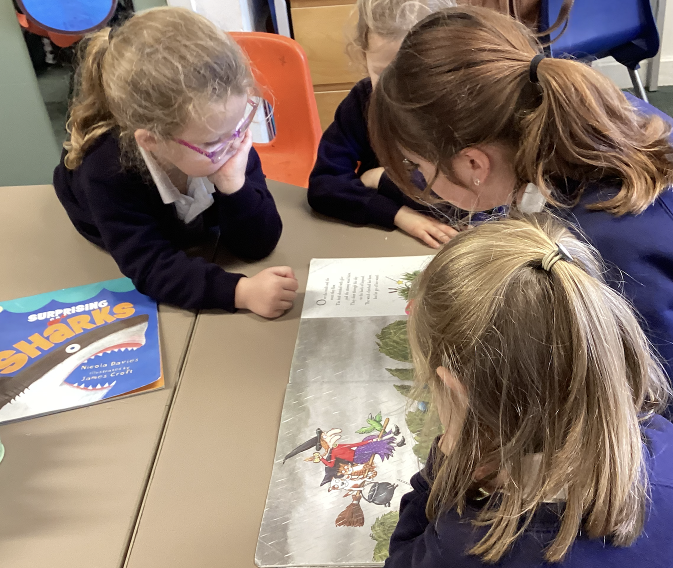 We have been lucky enough to listen to some of our parents reading their favourite stories to us, which has been wonderful! The children enjoyed listening to different adults share a wide range of stories. We have also continued our weekly meet-up with Buzzard class who come and support us with our reading each week.