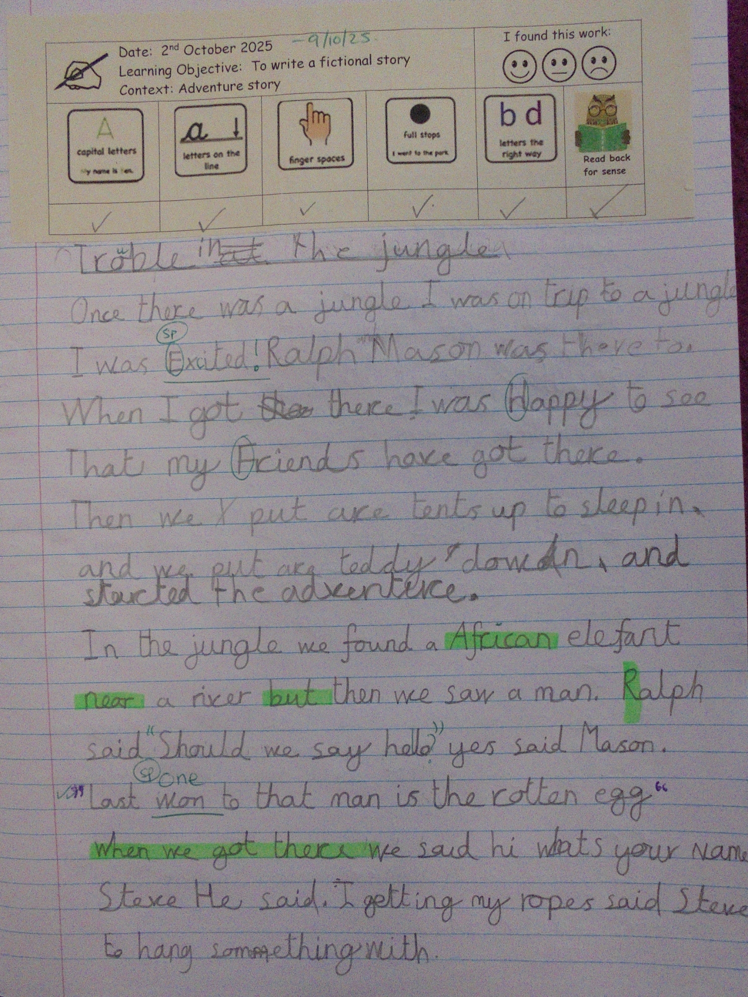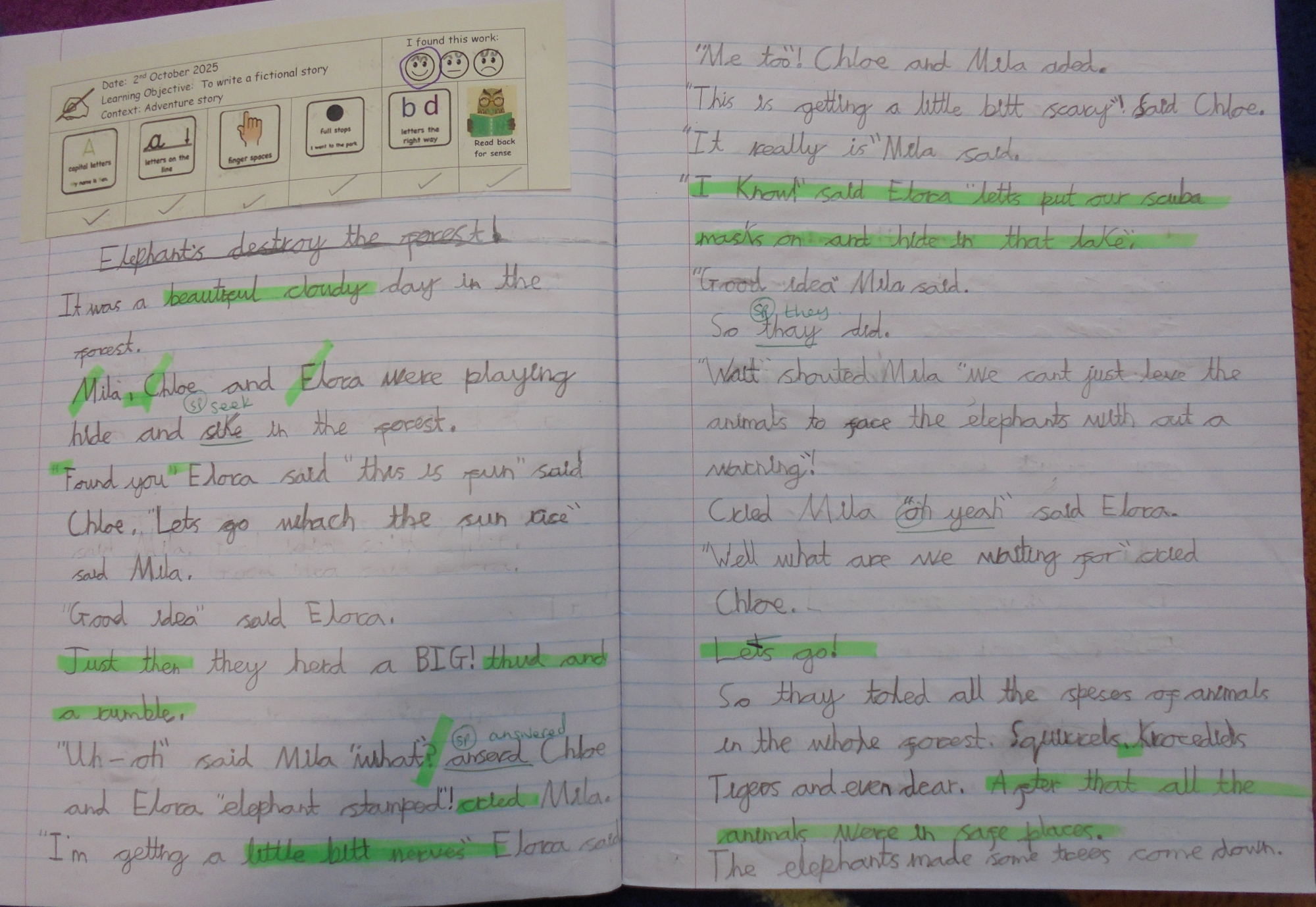 In English, we wrote our own adventure stories inspired by the book 'Rescue on Nim's Island' by Wendy Orr.  We focused on structuring a story in paragraphs, including opening, build-up, problem, resolution and ending.  The children also worked hard on using exciting vocabulary and description, as well as presentation, with many developing their joined-up handwriting.