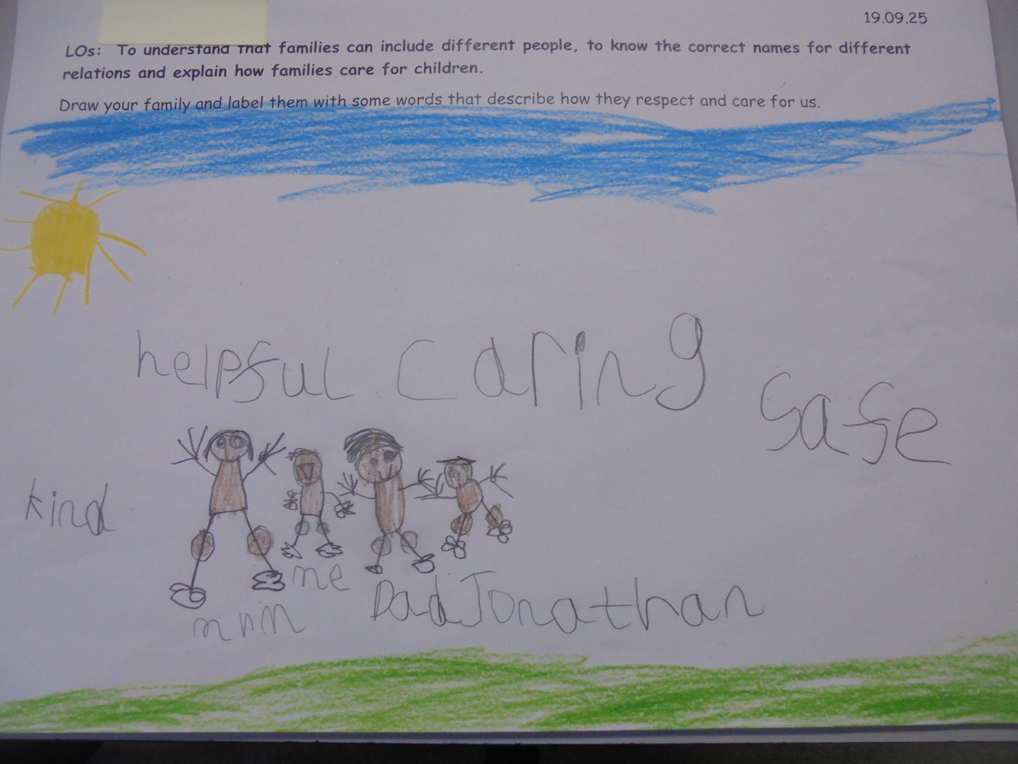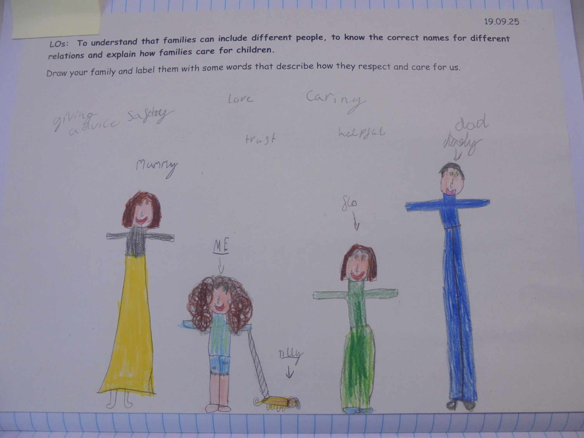In PSHE, we have been looking at different kinds of relationships and particularly at understanding how all families are different.  The children have been talking about their own families and identifying similarities and differences as well as discussing how family members and friends should treat each other.