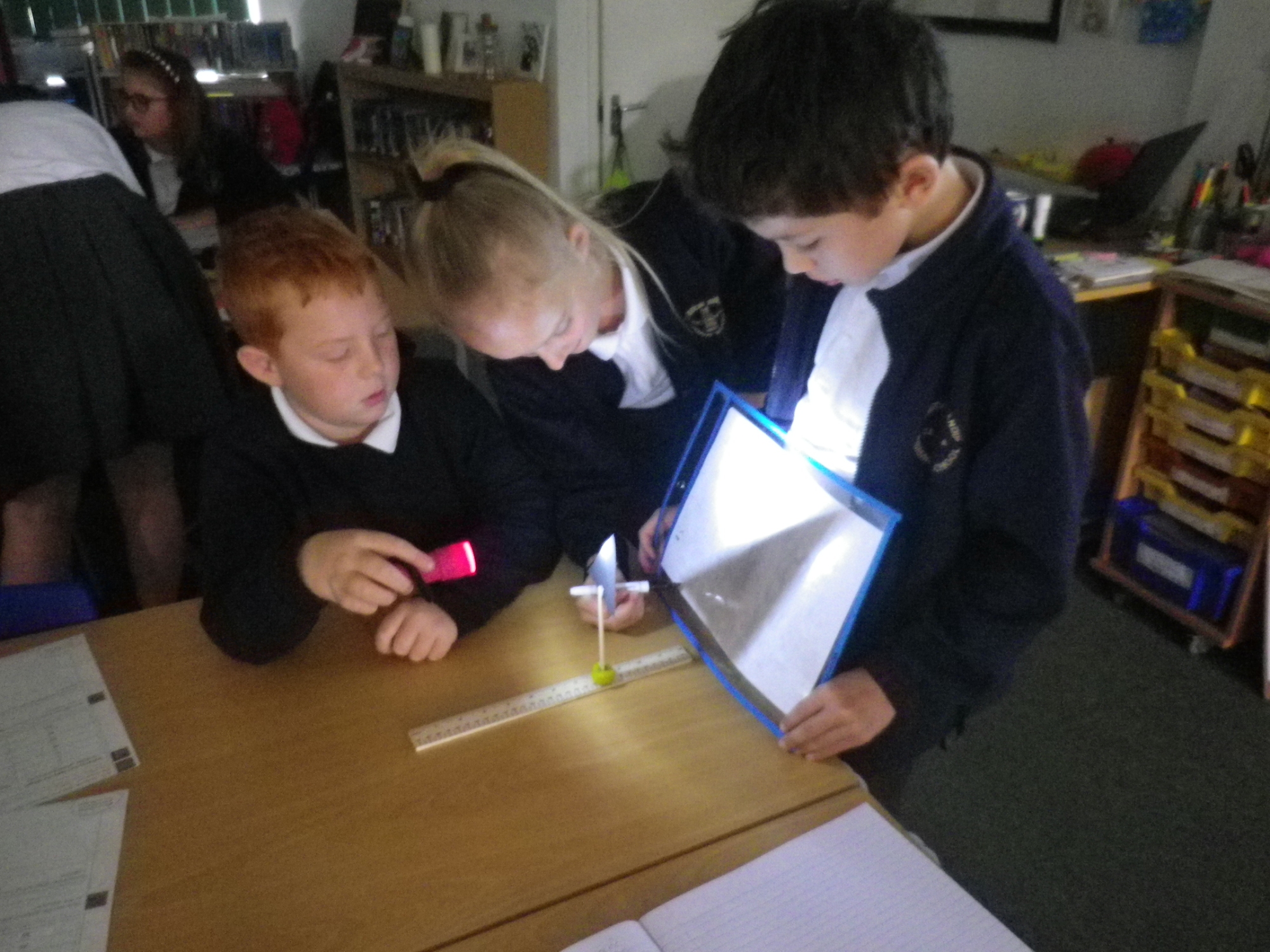 In Science, we have begun learning about light, including how we see and how shadows are produced. This has been achieved by carrying out experiments using torches to show how light travels; investigating how to change the size of a shadow ;and measuring and recording how the distance between the object and the surface affects the size of a shadow.