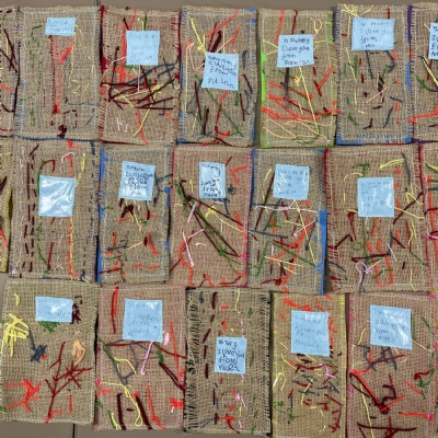 Robin class practised their sewing techniques each morning for 15 minutes as they arrived at school. They refined their stitches and created patterns before turning them into bookmarks for their Mother's Day gifts.