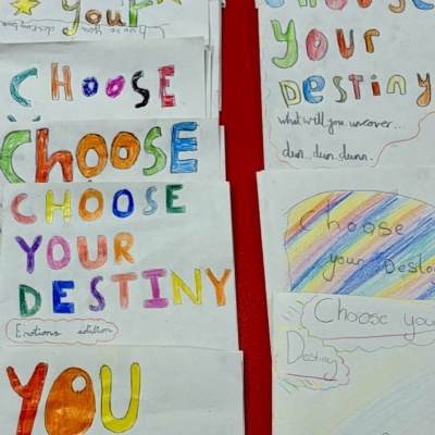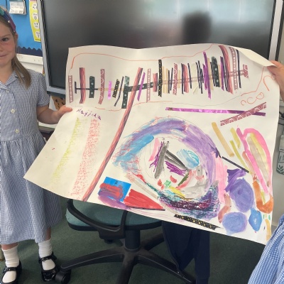 Sally Wetherall runs our art club after school on a Thursday. Pupils worked together in pairs to map, artistically, a journey on large paper using mixed-media. The children presented their creations to the rest of the classes the following day.