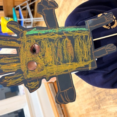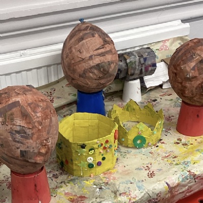 Art club began back after Christmas with a puppet making session. Sally demonstrated the skills needed, and then supported the children as they created their own stick puppets.