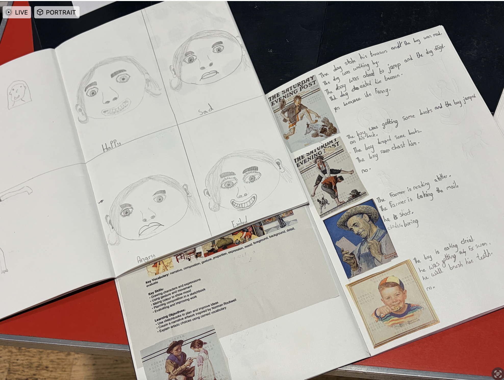 Robin and Owl classes focused on the work and distinctive drawing style of Quentin Blake, while Woodpecker and Buzzard classes explored the storytelling illustrations of Norman Rockwell.