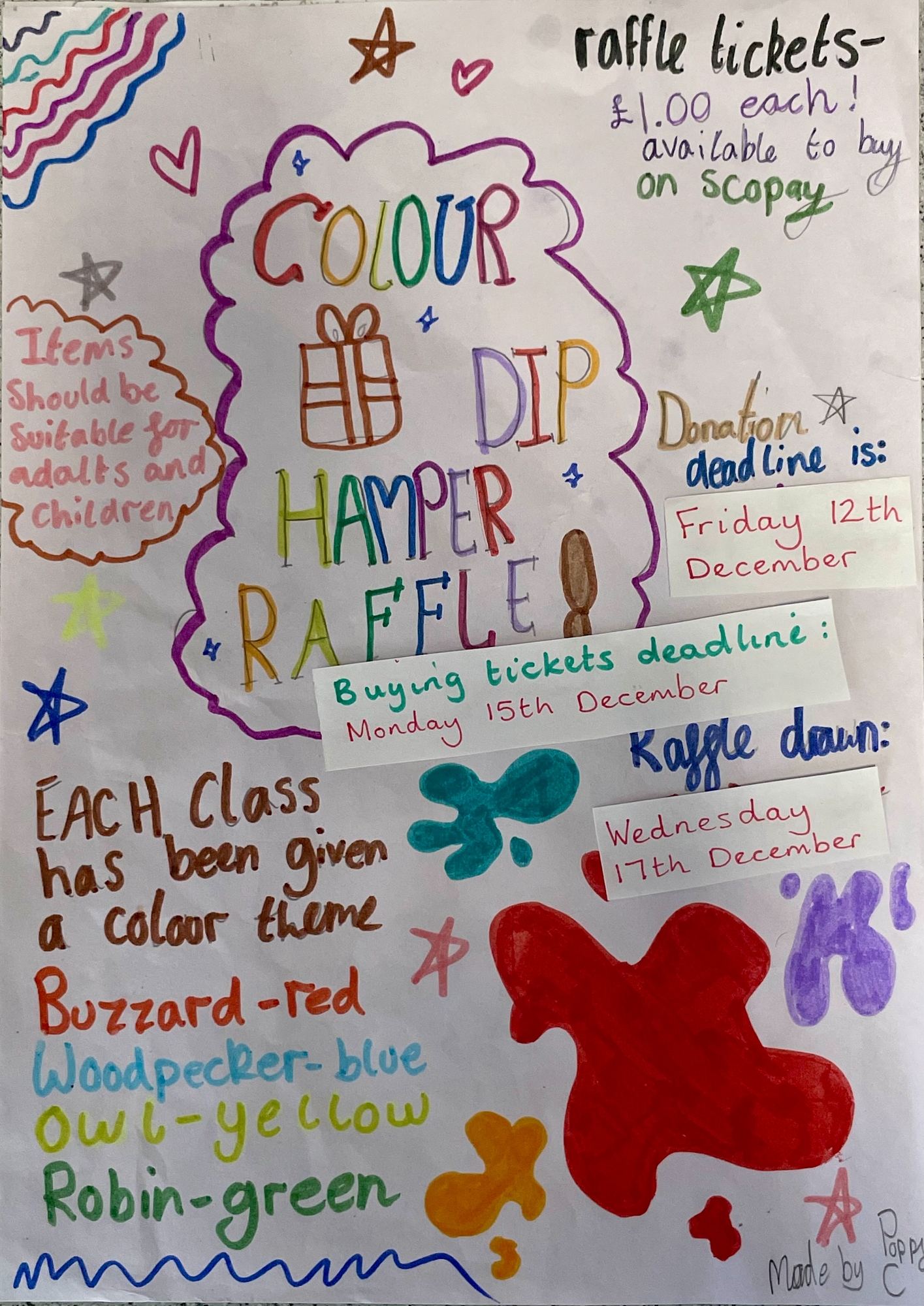 Our first event is a Colour hamper raffle which will take place before Christmas.