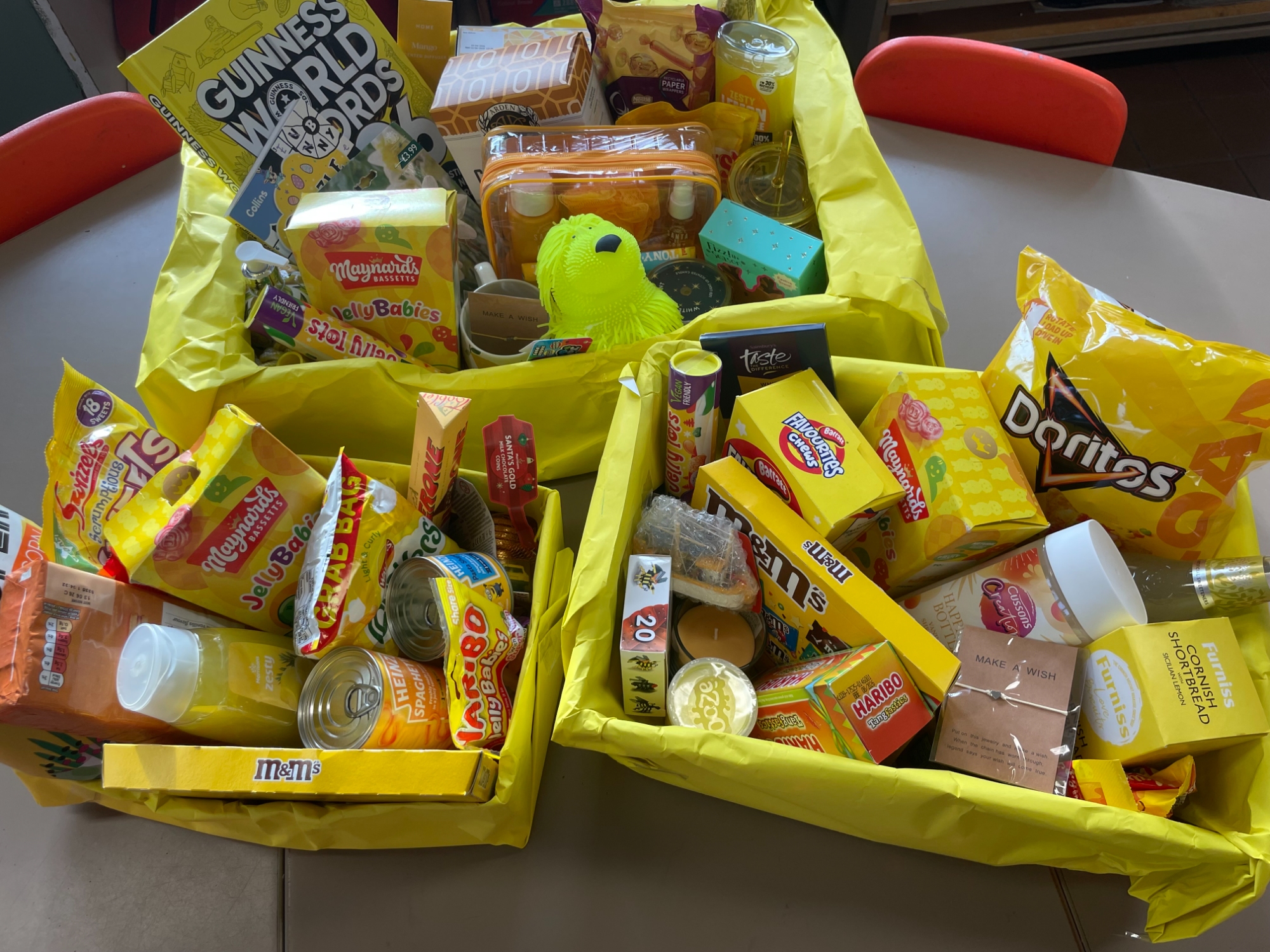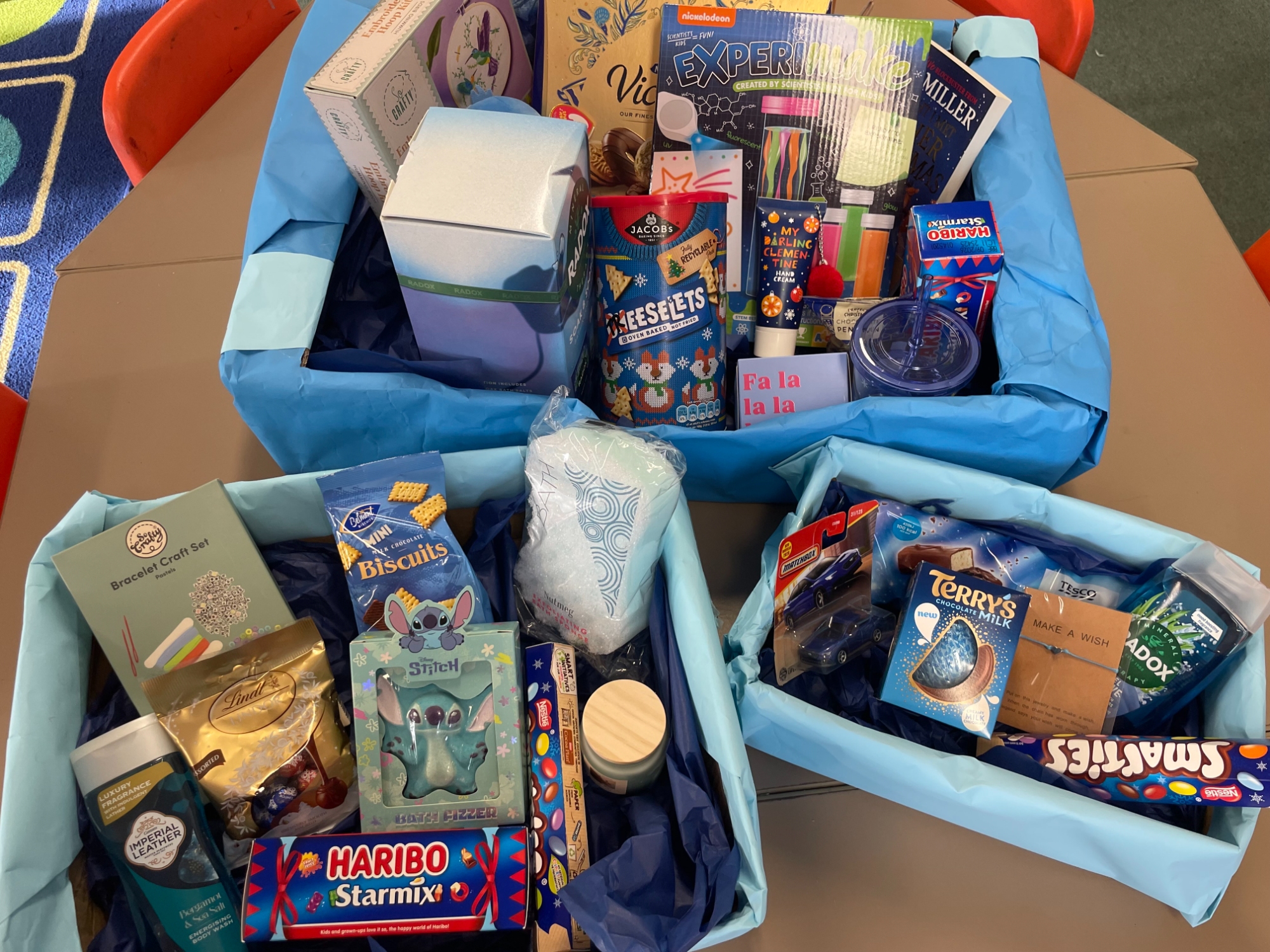 We received a generous quantity of gifts to make up the colour hampers for our raffle. The student council wrapped boxes to create the hampers and arranged the gifts ahead of the draw.