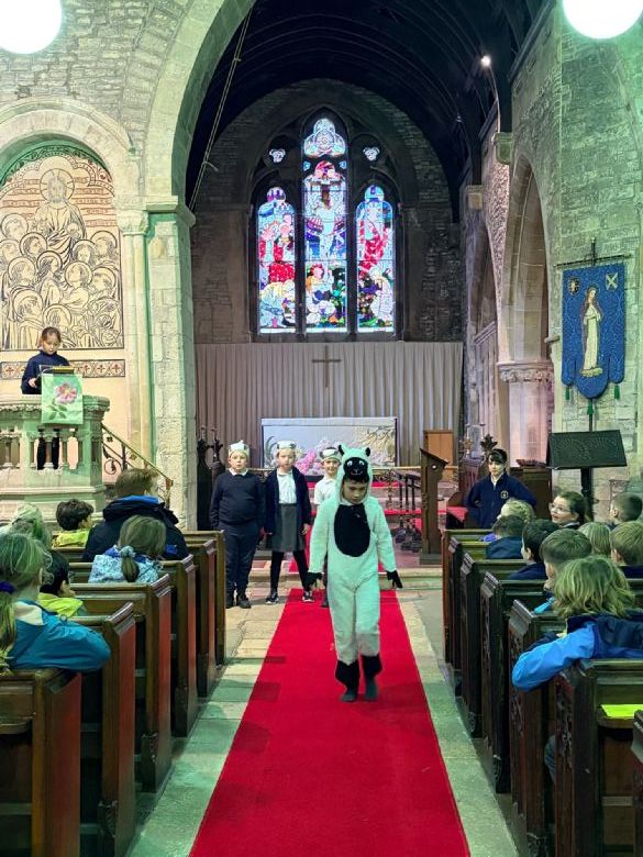 The pupils retold the Bible parable of The Lost Sheep (Luke 15:3–7) through a short drama, with some children dressed as sheep. The story showed how the shepherd notices when one sheep is missing and goes searching for it, reminding us that every individual matters and no one should feel forgotten.