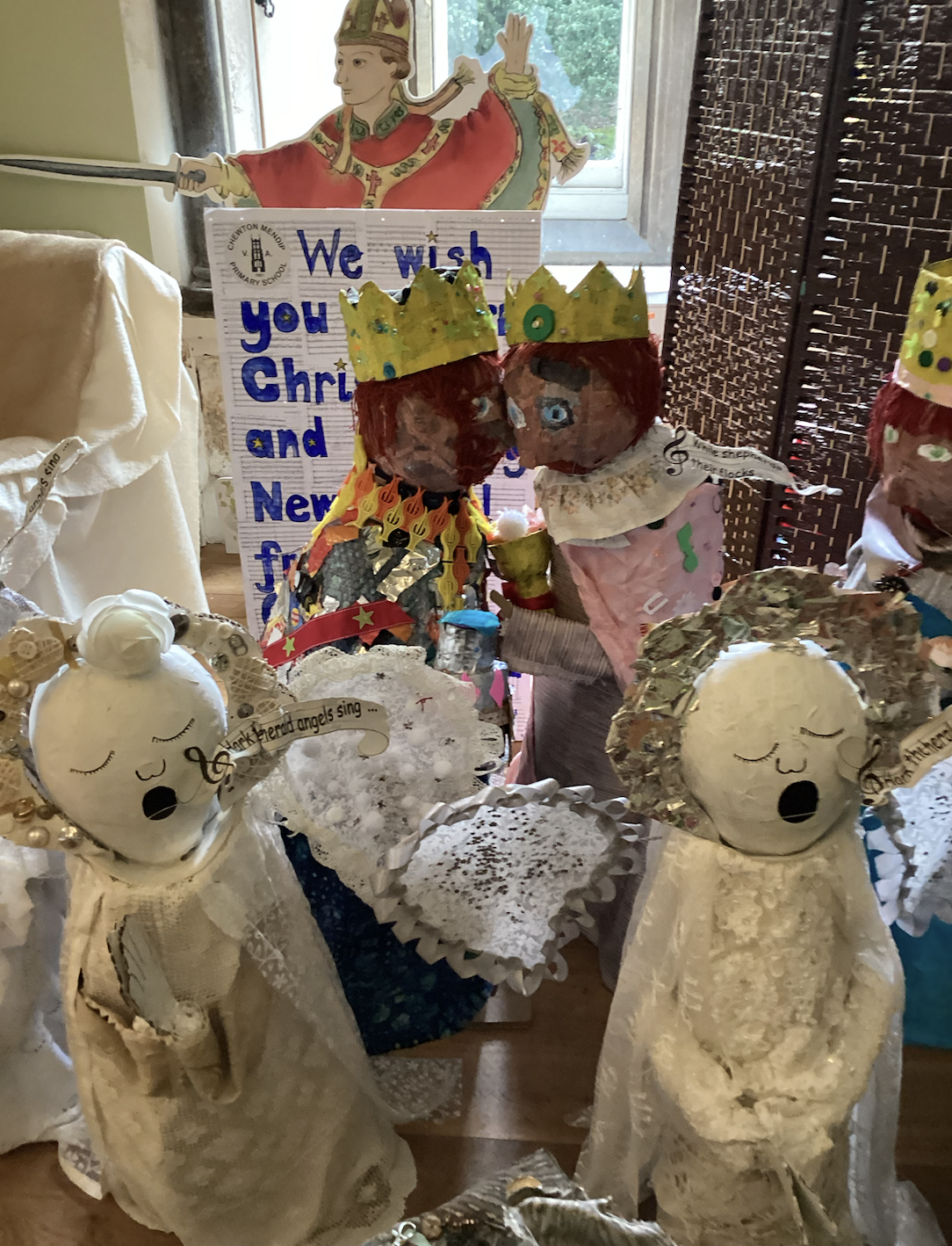 Robin class visited Bishops Palace to see our winning entry into the Eco Art Competition. The theme was 'Christmas Carols' and we won the award for Creative Interpretation of the Theme. Each class created 3D sculptures of the characters from different Christmas Carols, each singing their own song. We took inspiration from the artist Robert Bradford who recycles and reuses unusual objects to create art.